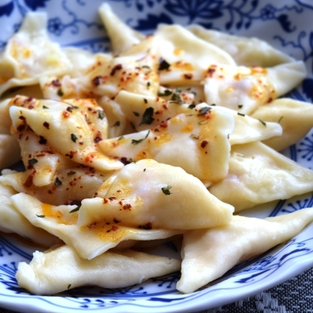 Flat Face トルコの水餃子マントゥ 左 とロシアの水餃子ぺリメニ 右 を作って食べました 中央アジアで食べた水餃子を思い出させる味でした